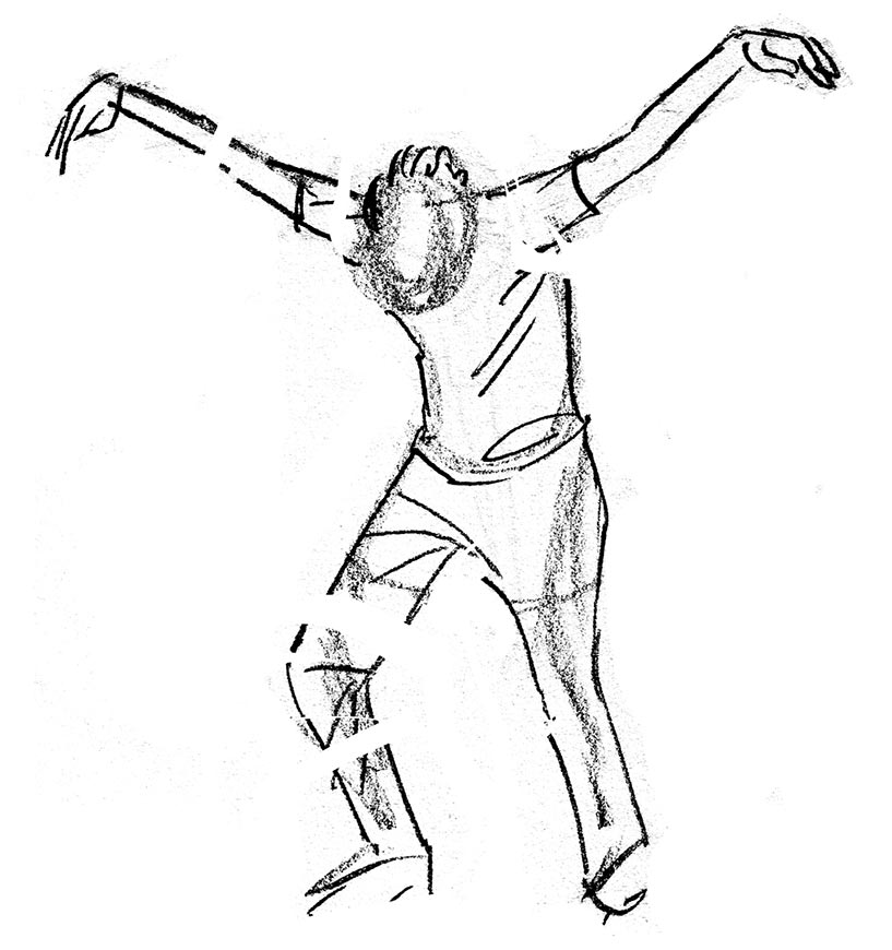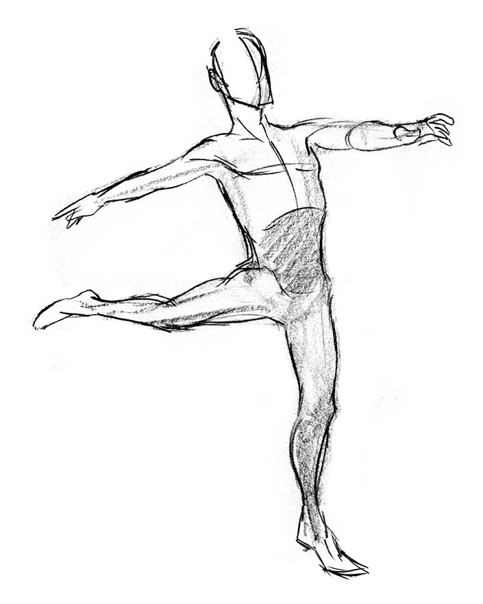 I prepared for the trip by rehearsing a ‘shorthand’ formula for quick, constructive gesture drawing. This helped me capture lots of fleeting poses in the studios later: